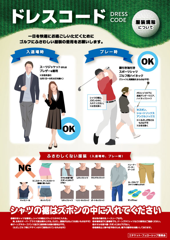 - ご来場時、およびプレー後のクラブハウス内ではジャケット(ブレザー)を着用してください。